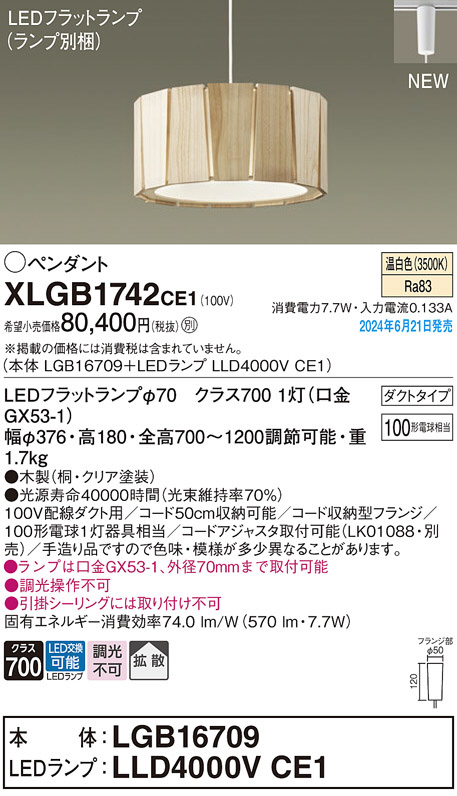 Panasonic ¥Ú¥ó¥À¥ó¥È¥é¥¤¥È XLGB1742CE1