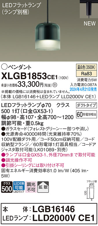 Panasonic ¥Ú¥ó¥À¥ó¥È¥é¥¤¥È XLGB1853CE1