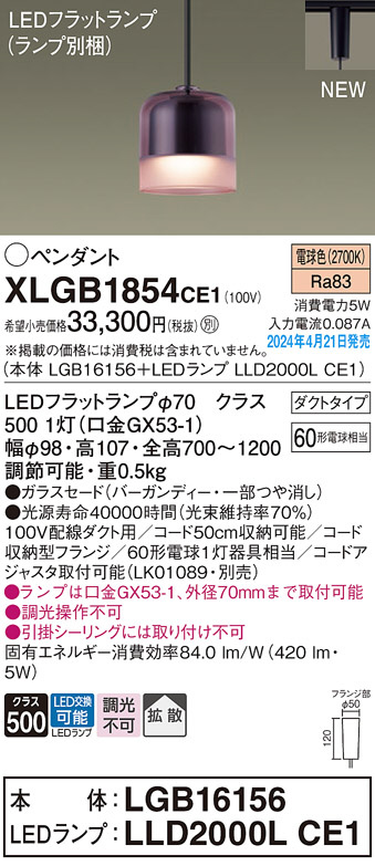 Panasonic ¥Ú¥ó¥À¥ó¥È¥é¥¤¥È XLGB1854CE1