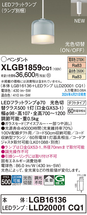 Panasonic ¥Ú¥ó¥À¥ó¥È¥é¥¤¥È XLGB1859CQ1