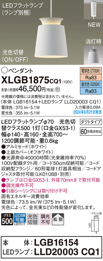Panasonic ¥Ú¥ó¥À¥ó¥È¥é¥¤¥È XLGB1875CQ1