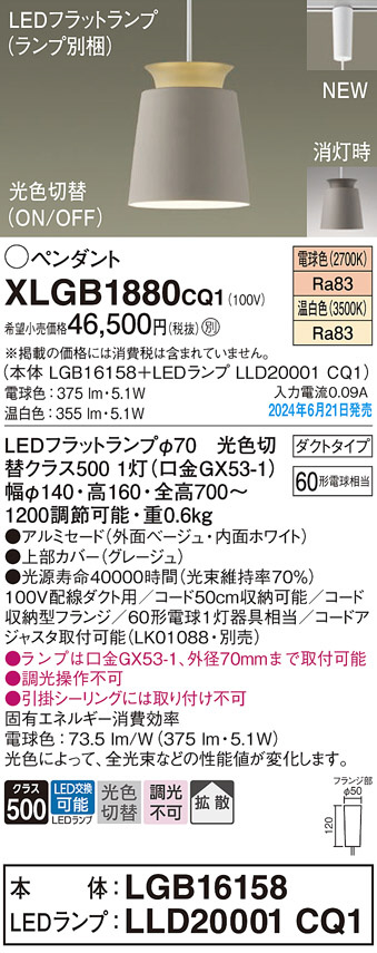 Panasonic ¥Ú¥ó¥À¥ó¥È¥é¥¤¥È XLGB1880CQ1