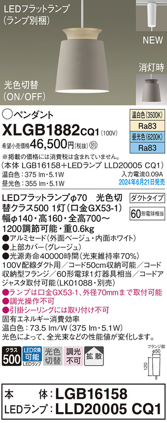Panasonic ¥Ú¥ó¥À¥ó¥È¥é¥¤¥È XLGB1882CQ1