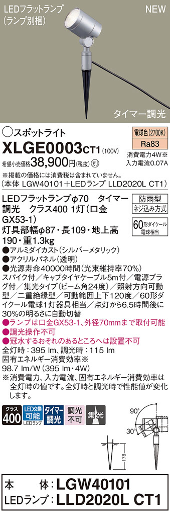 Panasonic ¥¨¥¯¥¹¥Æ¥ê¥¢¡¦¥¢¥¦¥È¥É¥¢ XLGE0003CT1