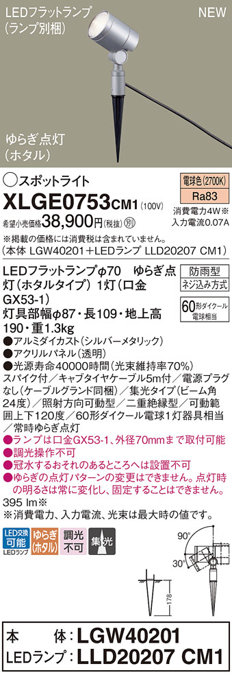 Panasonic ¥¨¥¯¥¹¥Æ¥ê¥¢¡¦¥¢¥¦¥È¥É¥¢ XLGE0753CM1
