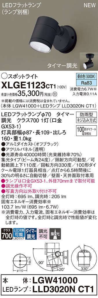 Panasonic ¥¨¥¯¥¹¥Æ¥ê¥¢¡¦¥¢¥¦¥È¥É¥¢ XLGE1123CT1
