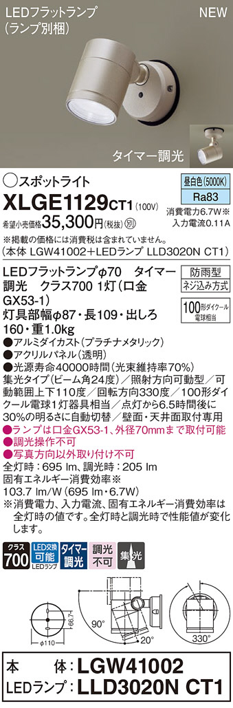 Panasonic ¥¨¥¯¥¹¥Æ¥ê¥¢¡¦¥¢¥¦¥È¥É¥¢ XLGE1129CT1