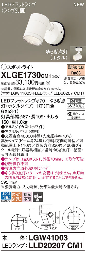 Panasonic ¥¨¥¯¥¹¥Æ¥ê¥¢¡¦¥¢¥¦¥È¥É¥¢ XLGE1730CM1
