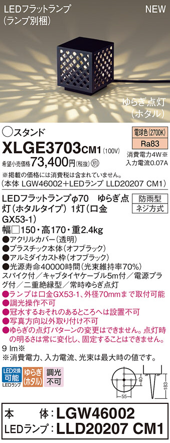 Panasonic ¥¨¥¯¥¹¥Æ¥ê¥¢¡¦¥¢¥¦¥È¥É¥¢ XLGE3703CM1