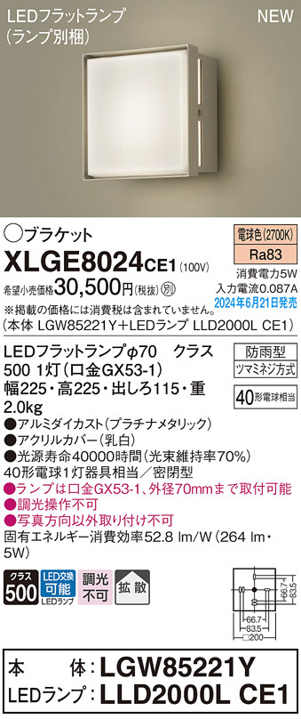 Panasonic ¥¨¥¯¥¹¥Æ¥ê¥¢¡¦¥¢¥¦¥È¥É¥¢ XLGE8024CE1
