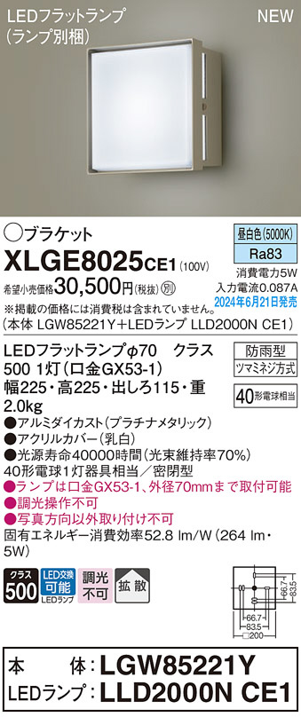Panasonic ¥¨¥¯¥¹¥Æ¥ê¥¢¡¦¥¢¥¦¥È¥É¥¢ XLGE8025CE1
