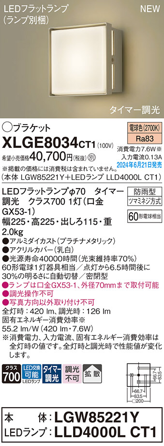 Panasonic ¥¨¥¯¥¹¥Æ¥ê¥¢¡¦¥¢¥¦¥È¥É¥¢ XLGE8034CT1