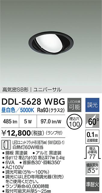 DAIKO Âç¸÷Åŵ¡ ¥æ¥Ë¥Ð¡¼¥µ¥ë¥À¥¦¥ó¥é¥¤¥È DDL-5628WBG