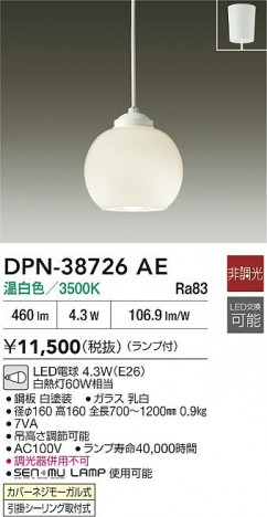 DAIKO Âç¸÷Åŵ¡ ¾®·¿¥Ú¥ó¥À¥ó¥È DPN-38726AE