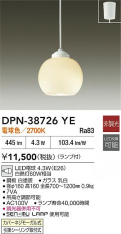 DAIKO Âç¸÷Åŵ¡ ¾®·¿¥Ú¥ó¥À¥ó¥È DPN-38726YE
