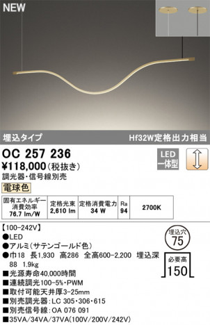 ODELIC ¥ª¡¼¥Ç¥ê¥Ã¥¯ LED ¥·¥ã¥ó¥Ç¥ê¥¢ OC257236