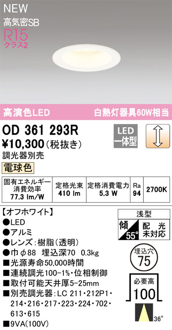 ODELIC ¥ª¡¼¥Ç¥ê¥Ã¥¯ LED ¥À¥¦¥ó¥é¥¤¥È OD361293R