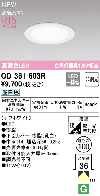 ODELIC ¥ª¡¼¥Ç¥ê¥Ã¥¯ LED ¥À¥¦¥ó¥é¥¤¥È OD361603R