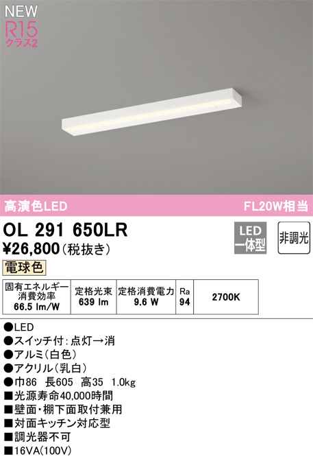 ODELIC ¥ª¡¼¥Ç¥ê¥Ã¥¯ LED ¥¥Ã¥Á¥ó¥é¥¤¥È OL291650LR