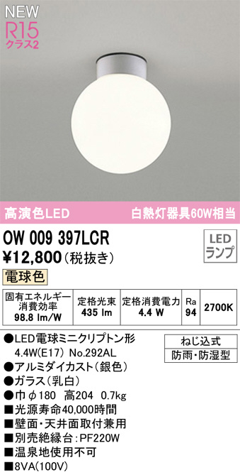 ODELIC ¥ª¡¼¥Ç¥ê¥Ã¥¯ LED ¥¨¥¯¥¹¥Æ¥ê¥¢¥é¥¤¥È OW009397LCR