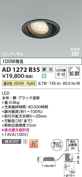Koizumi ¥³¥¤¥º¥ß¾ÈÌÀ LED¹âµ¤Ì©SB¥æ¥Ë¥Ð¡¼¥µ¥ë¥À¥¦¥ó¥é¥¤¥È AD1272B35