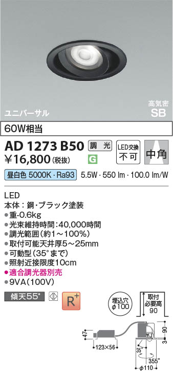 Koizumi ¥³¥¤¥º¥ß¾ÈÌÀ LED¹âµ¤Ì©SB¥æ¥Ë¥Ð¡¼¥µ¥ë¥À¥¦¥ó¥é¥¤¥È AD1273B50