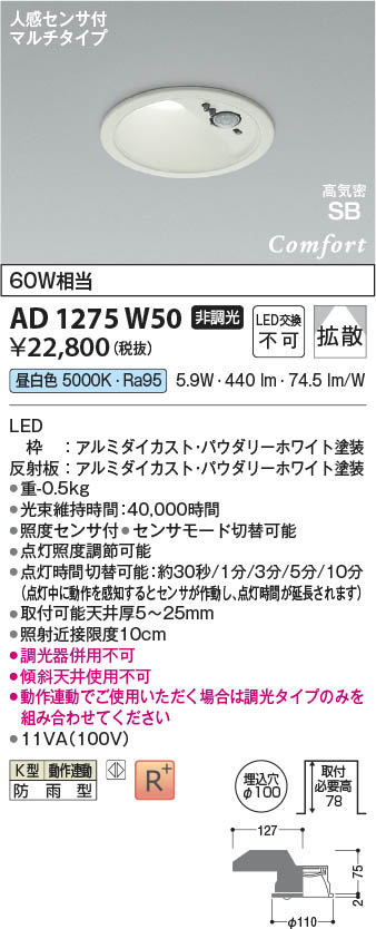 Koizumi ¥³¥¤¥º¥ß¾ÈÌÀ LED¹âµ¤Ì©SB¥À¥¦¥ó¥é¥¤¥È AD1275W50