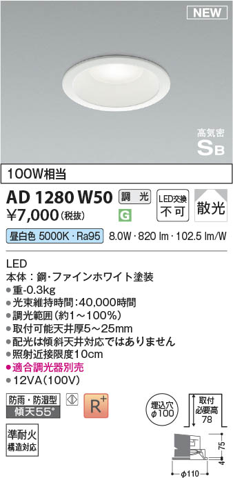 Koizumi ¥³¥¤¥º¥ß¾ÈÌÀ ¹âµ¤Ì©SB¥À¥¦¥ó¥é¥¤¥È AD1280W50