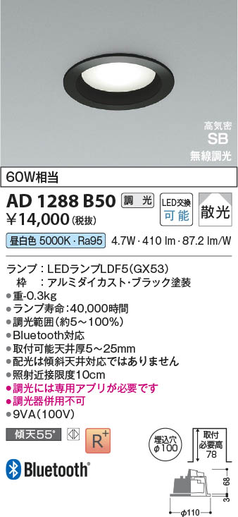 Koizumi ¥³¥¤¥º¥ß¾ÈÌÀ LED¹âµ¤Ì©SB¥À¥¦¥ó¥é¥¤¥È AD1288B50