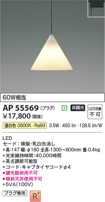 Koizumi ¥³¥¤¥º¥ß¾ÈÌÀ LED¥Ú¥ó¥À¥ó¥È AP55569
