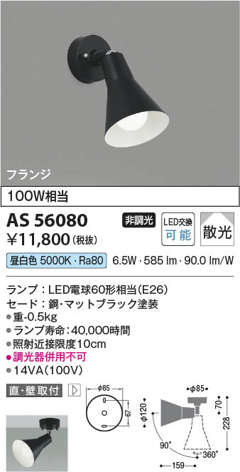 Koizumi ¥³¥¤¥º¥ß¾ÈÌÀ LED¥¹¥Ý¥Ã¥È¥é¥¤¥È AS56080