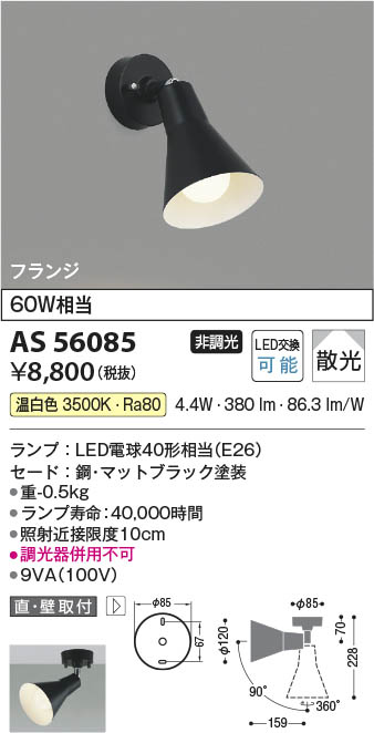 Koizumi ¥³¥¤¥º¥ß¾ÈÌÀ LED¥¹¥Ý¥Ã¥È¥é¥¤¥È AS56085