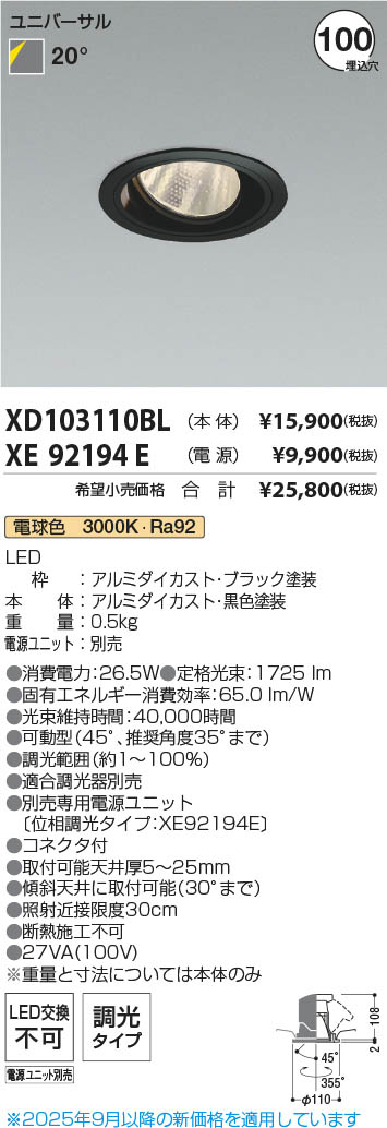 Koizumi ¥³¥¤¥º¥ß¾ÈÌÀ LED¥æ¥Ë¥Ð¡¼¥µ¥ë¥À¥¦¥ó¥é¥¤¥È ËÜÂÎ XD103110BL