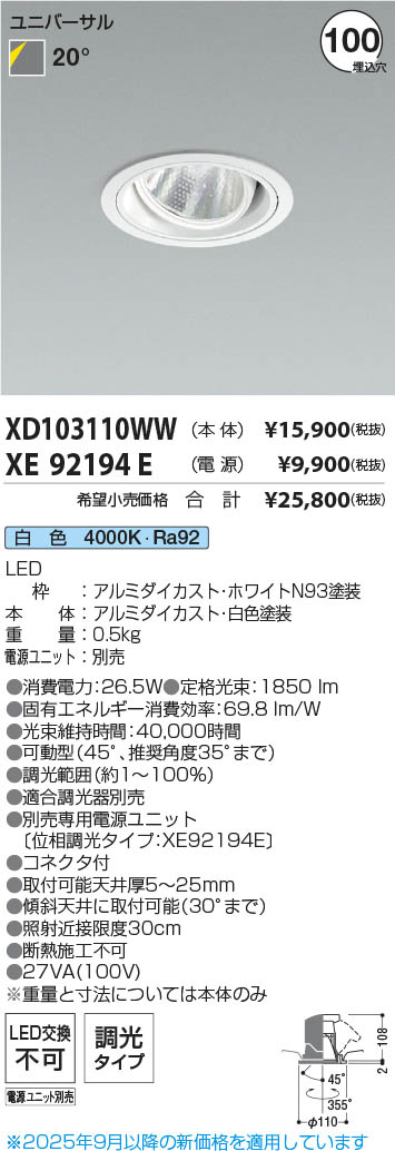 Koizumi ¥³¥¤¥º¥ß¾ÈÌÀ LED¥æ¥Ë¥Ð¡¼¥µ¥ë¥À¥¦¥ó¥é¥¤¥È ËÜÂÎ XD103110WW