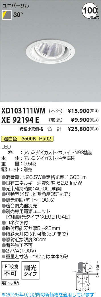 Koizumi ¥³¥¤¥º¥ß¾ÈÌÀ LED¥æ¥Ë¥Ð¡¼¥µ¥ë¥À¥¦¥ó¥é¥¤¥È ËÜÂÎ XD103111WM