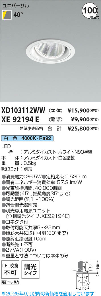 Koizumi ¥³¥¤¥º¥ß¾ÈÌÀ LED¥æ¥Ë¥Ð¡¼¥µ¥ë¥À¥¦¥ó¥é¥¤¥È ËÜÂÎ XD103112WW