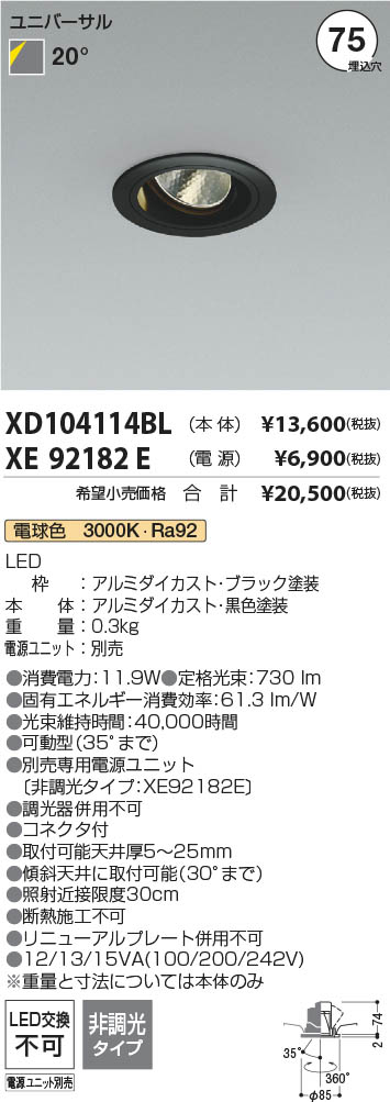 Koizumi ¥³¥¤¥º¥ß¾ÈÌÀ LED¥æ¥Ë¥Ð¡¼¥µ¥ë¥À¥¦¥ó¥é¥¤¥È ËÜÂÎ XD104114BL