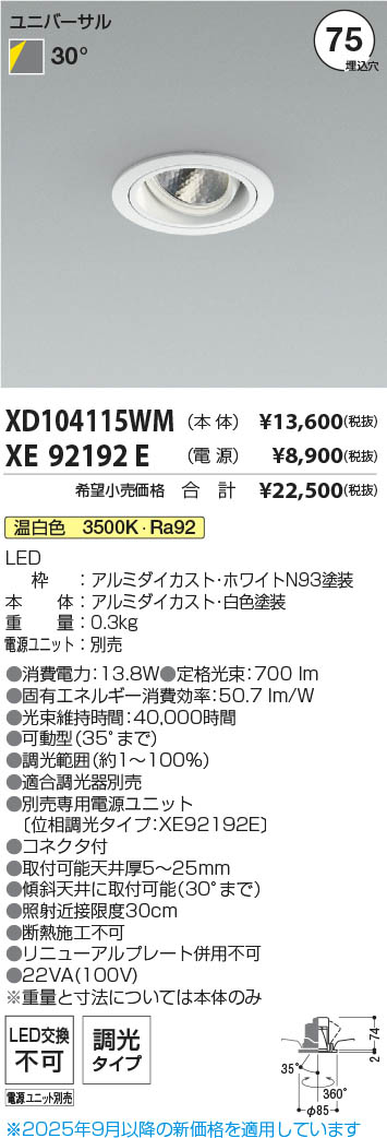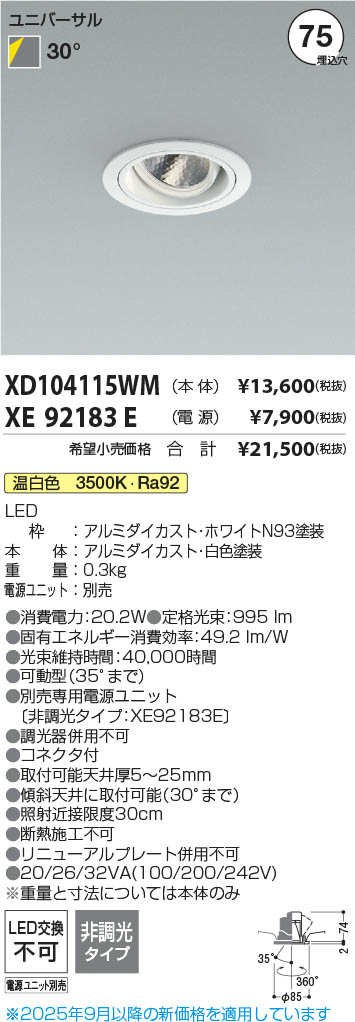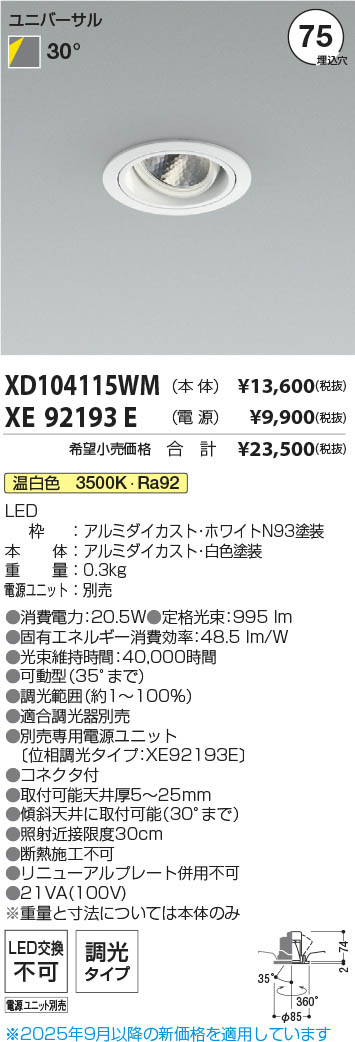 Koizumi ¥³¥¤¥º¥ß¾ÈÌÀ LED¥æ¥Ë¥Ð¡¼¥µ¥ë¥À¥¦¥ó¥é¥¤¥È ËÜÂÎ XD104115WM
