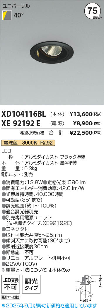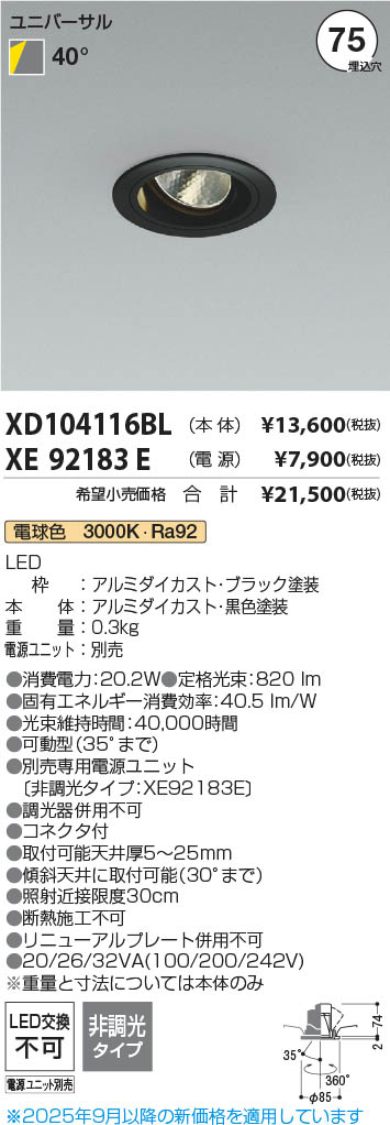 Koizumi ¥³¥¤¥º¥ß¾ÈÌÀ LED¥æ¥Ë¥Ð¡¼¥µ¥ë¥À¥¦¥ó¥é¥¤¥È ËÜÂÎ XD104116BL