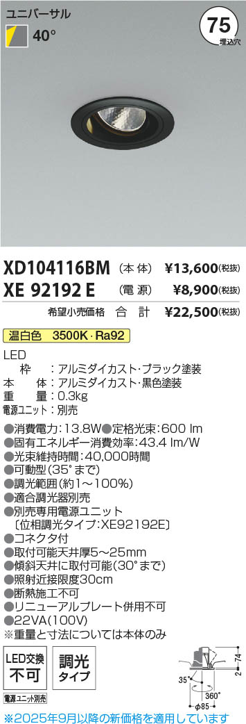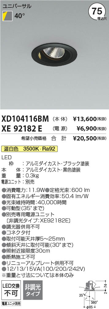 Koizumi ¥³¥¤¥º¥ß¾ÈÌÀ LED¥æ¥Ë¥Ð¡¼¥µ¥ë¥À¥¦¥ó¥é¥¤¥È ËÜÂÎ XD104116BM