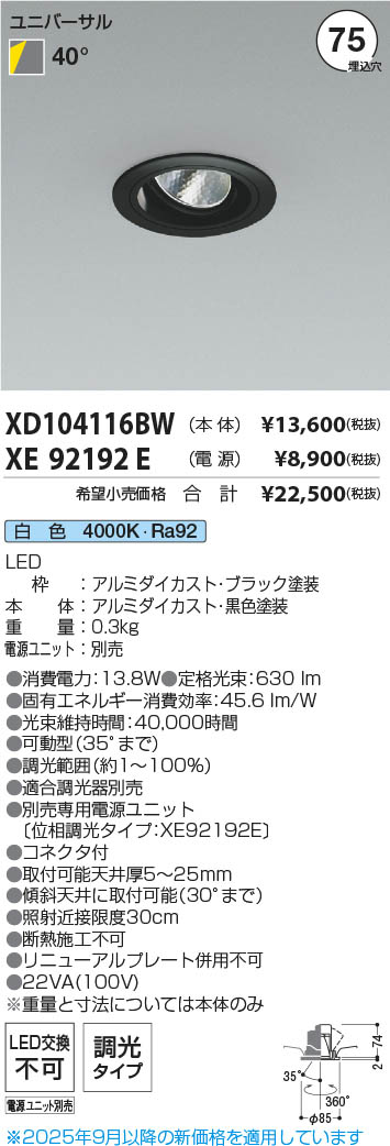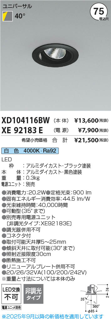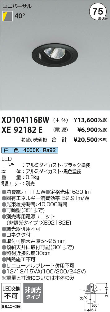 Koizumi ¥³¥¤¥º¥ß¾ÈÌÀ LED¥æ¥Ë¥Ð¡¼¥µ¥ë¥À¥¦¥ó¥é¥¤¥È ËÜÂÎ XD104116BW