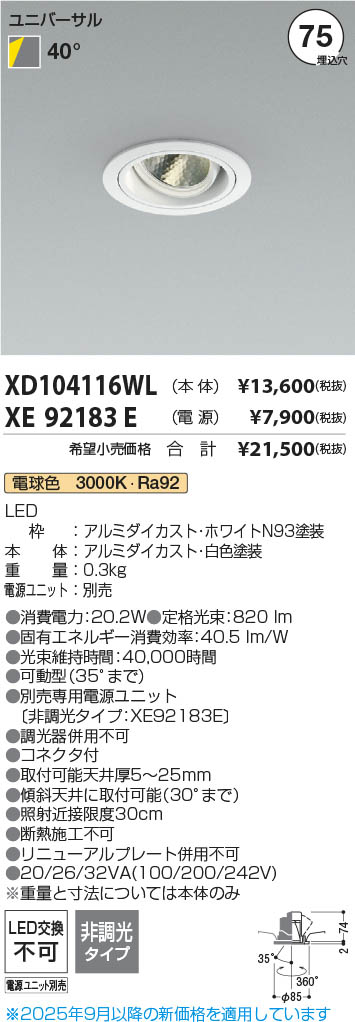 Koizumi ¥³¥¤¥º¥ß¾ÈÌÀ LED¥æ¥Ë¥Ð¡¼¥µ¥ë¥À¥¦¥ó¥é¥¤¥È ËÜÂÎ XD104116WL