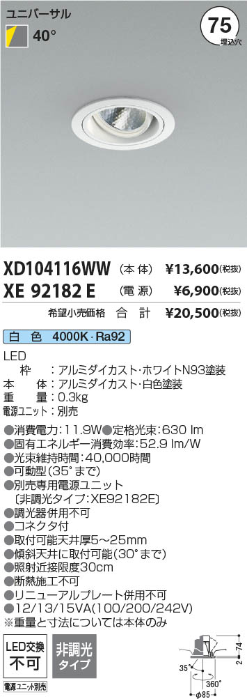 Koizumi ¥³¥¤¥º¥ß¾ÈÌÀ LED¥æ¥Ë¥Ð¡¼¥µ¥ë¥À¥¦¥ó¥é¥¤¥È ËÜÂÎ XD104116WW