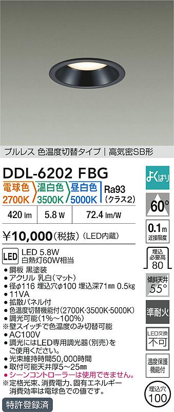 DAIKO Âç¸÷Åŵ¡ LED¿§²¹ÅÙÀÚÂØ¥À¥¦¥ó¥é¥¤¥È DDL-6202FBG