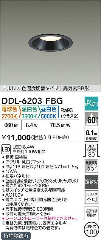 DAIKO Âç¸÷Åŵ¡ LED¿§²¹ÅÙÀÚÂØ¥À¥¦¥ó¥é¥¤¥È DDL-6203FBG