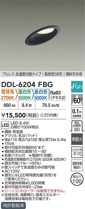 DAIKO Âç¸÷Åŵ¡ LED¿§²¹ÅÙÀÚÂØ¥À¥¦¥ó¥é¥¤¥È DDL-6204FBG
