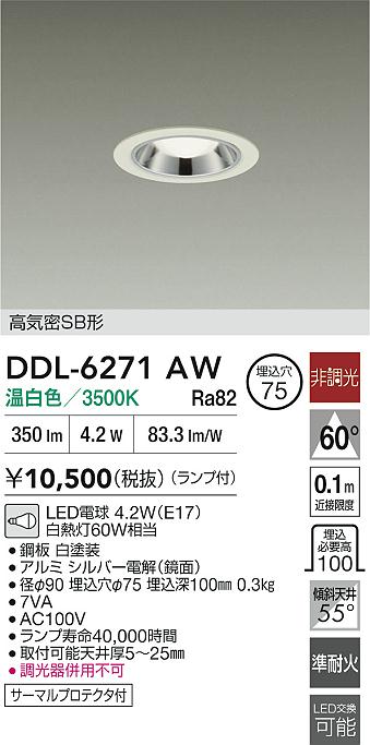 DAIKO Âç¸÷Åŵ¡ LED¥À¥¦¥ó¥é¥¤¥È DDL-6271AW