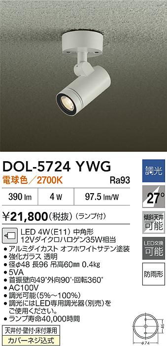 DAIKO Âç¸÷Åŵ¡ LED¥¢¥¦¥È¥É¥¢¥¹¥Ý¥Ã¥È DOL-5724YWG