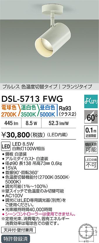 DAIKO Âç¸÷Åŵ¡ LED¿§²¹ÅÙÀÚÂØ¥¹¥Ý¥Ã¥È¥é¥¤¥È DSL-5713FWG