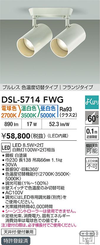 DAIKO Âç¸÷Åŵ¡ LED¿§²¹ÅÙÀÚÂØ¥¹¥Ý¥Ã¥È¥é¥¤¥È DSL-5714FWG